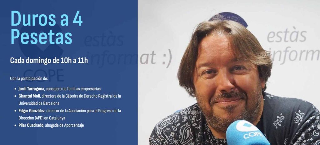 Entrevista a Jordi Tarragona, consejero de familias empresarias Jordi Tarragona, consejero de familias empresarias y autor de diferentes libros de referencia en el ámbito del análisis de la empresa familiar, ha subrayado en nuestro programa la importancia de entender la empresa familiar como el motor económico más común. “Casi el 90% de las empresas son […]