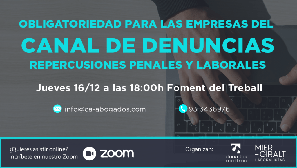 A partir del dia 17/12 serà obligatori que les empreses de més de 50 treballadors implementin un canal de denúncies. Una actuació que per les empreses més petites tot i no ser obligatori serà recomanable.